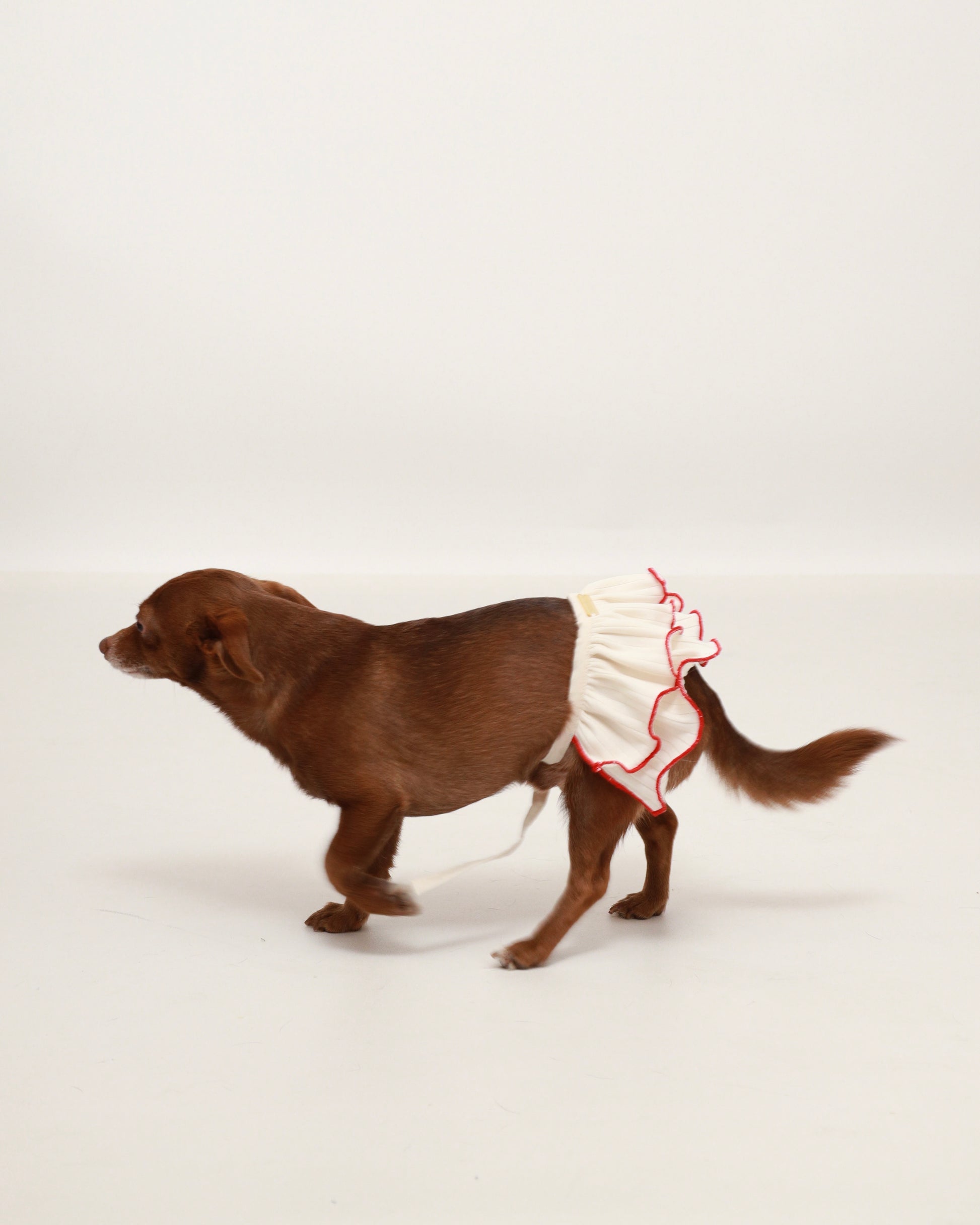 Elevate your pup's spring wardrobe with this versatile Ivory Contrast Skirt, designed for comfort and style. Featuring an adjustable drawstring waist that adapts to your pet's unique fit, this piece ensures a secure, customized silhouette every time. The charming lettuce hem adds a playful texture and movement that captures attention. Available in five sizes, finding the perfect fit for your furry friend has never been easier. An essential seasonal piece that transitions seamlessly from park days to special occasions.
